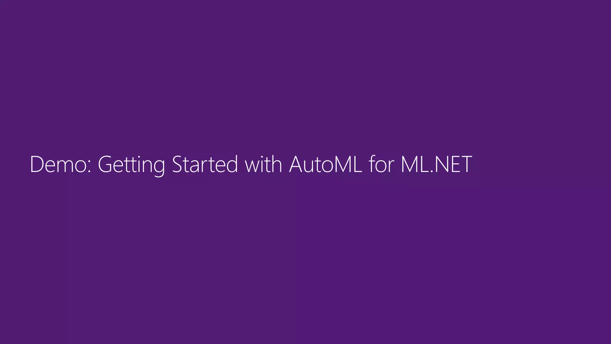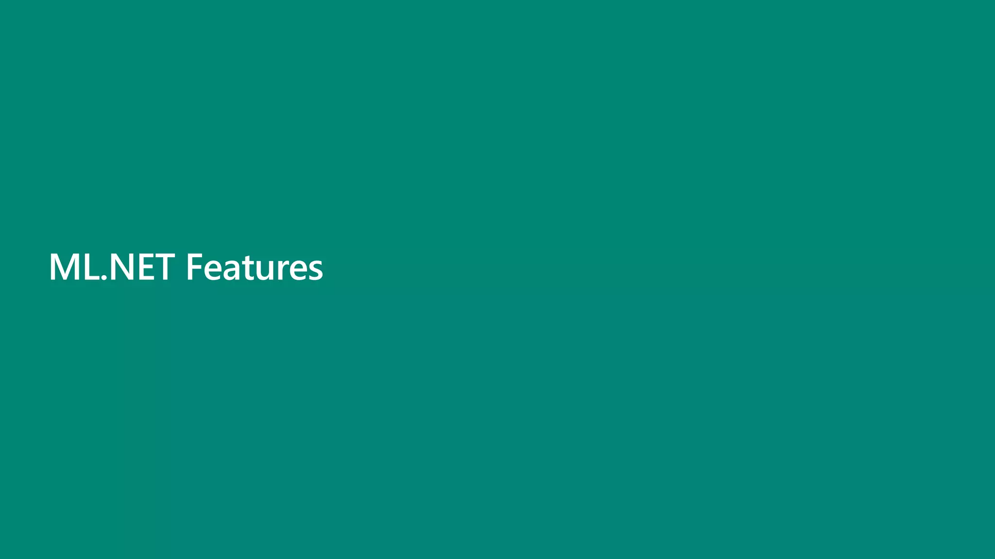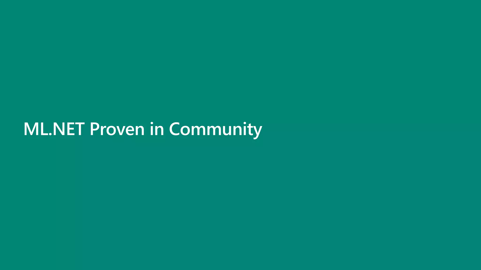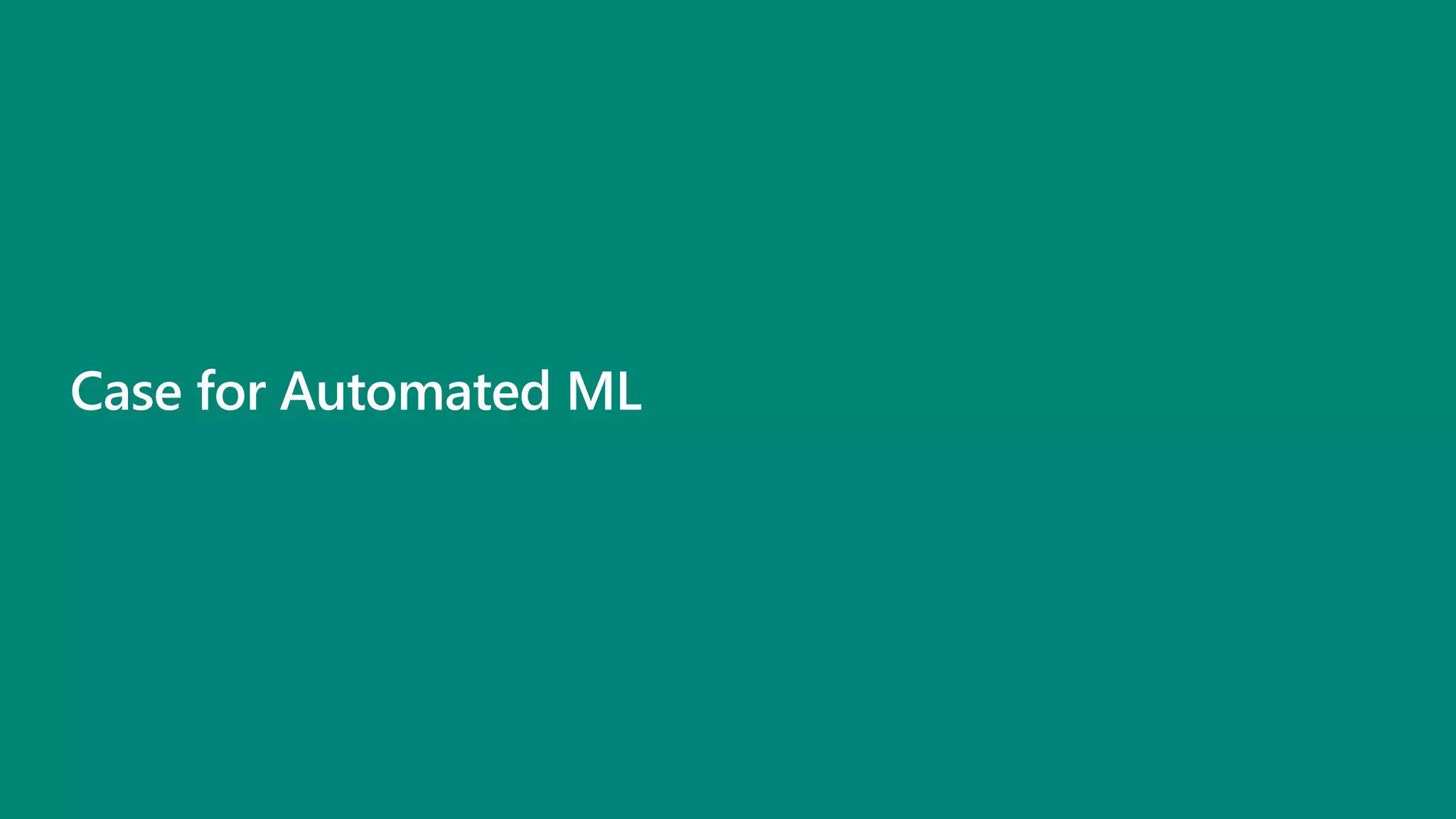 The document outlines the capabilities of Automated Machine Learning (AutoML) within Microsoft's ML.NET, highlighting features like automated model building and intelligent data handling. It aims to democratize AI by enabling users to create and deploy machine learning solutions efficiently, utilizing support for various algorithms and user-friendly interfaces. Customer testimonials underscore its effectiveness compared to other libraries and the seamless integration it offers for data scientists and developers.