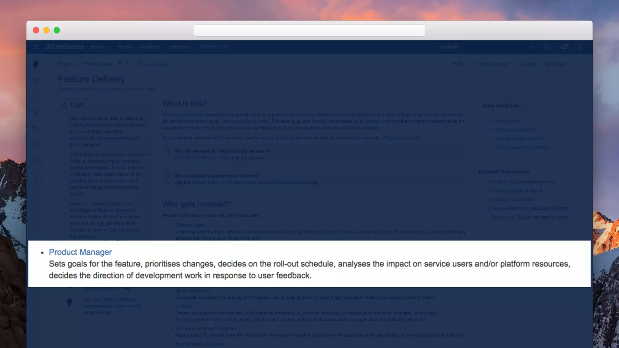 The document discusses the evolving role of product managers in a DevOps environment, emphasizing their responsibility for managing features throughout the entire lifecycle, including incident management and reliability as a critical aspect of performance. It highlights the need for collaboration between product teams and site reliability engineering (SRE) to ensure operational excellence and customer satisfaction. The importance of clear communication during incidents and post-release processes, as well as utilizing metrics like Apdex to measure performance and reliability, is also outlined.