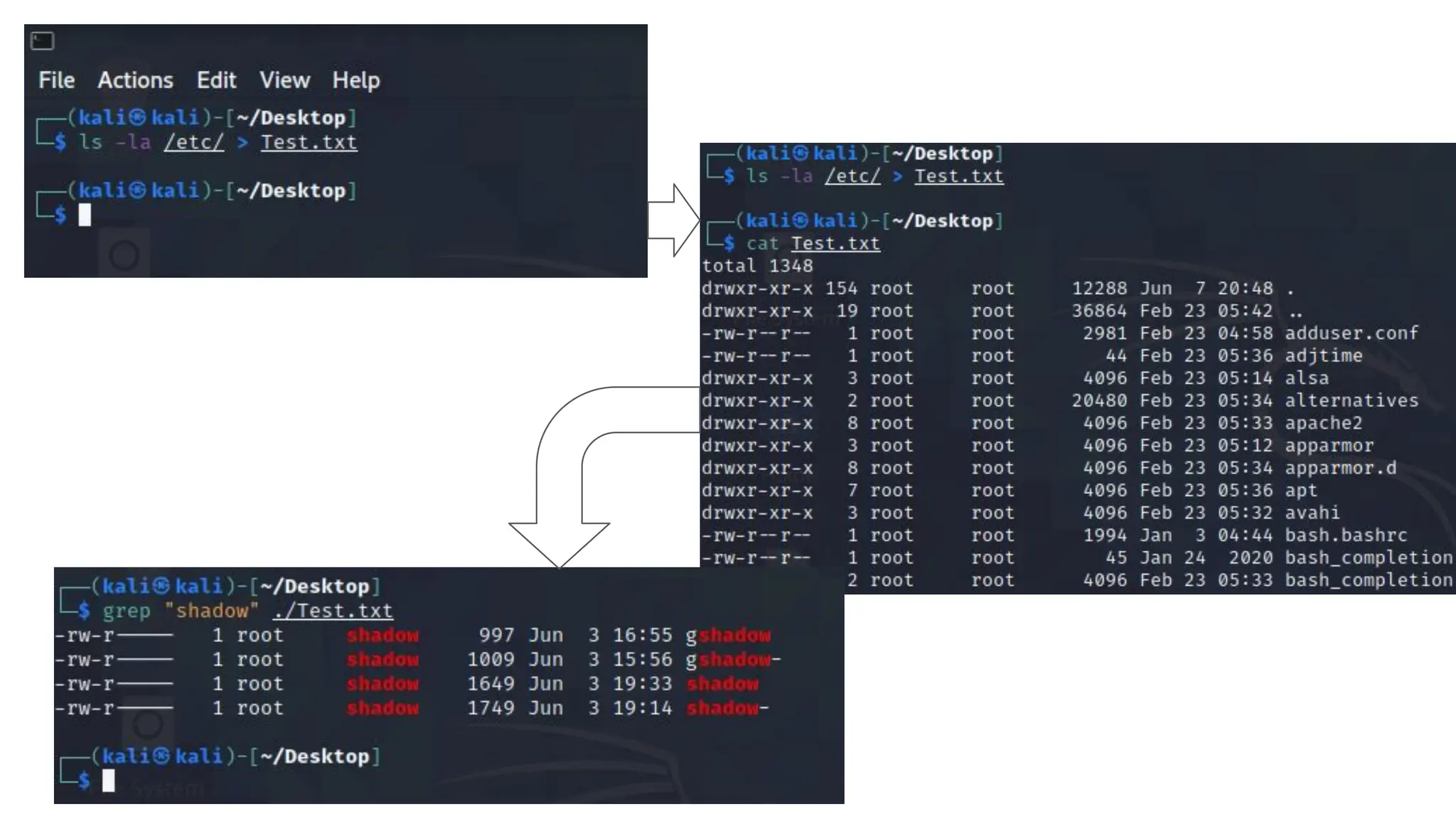 ● Suppose you listed /etc subfile and subdirectories and saves it into