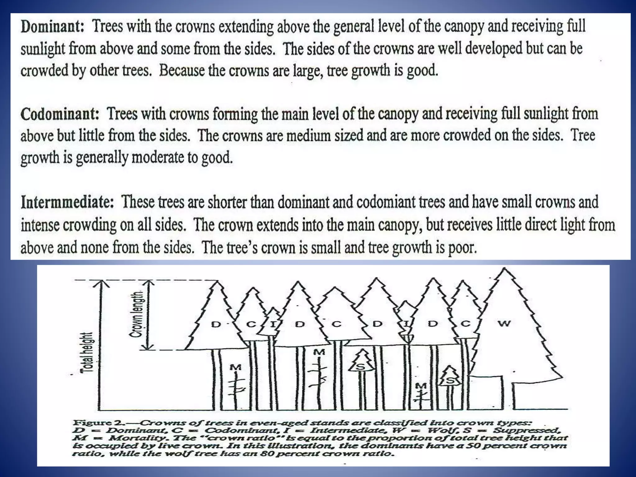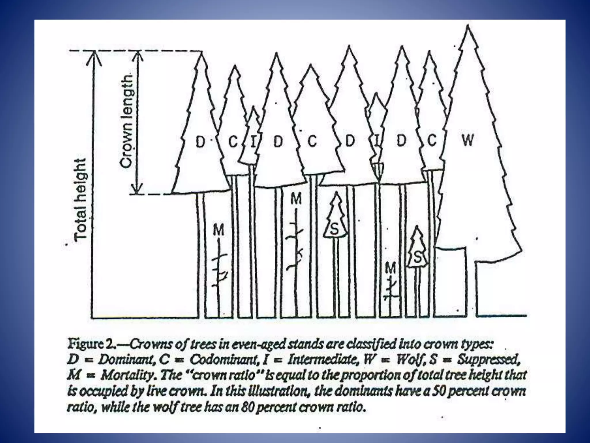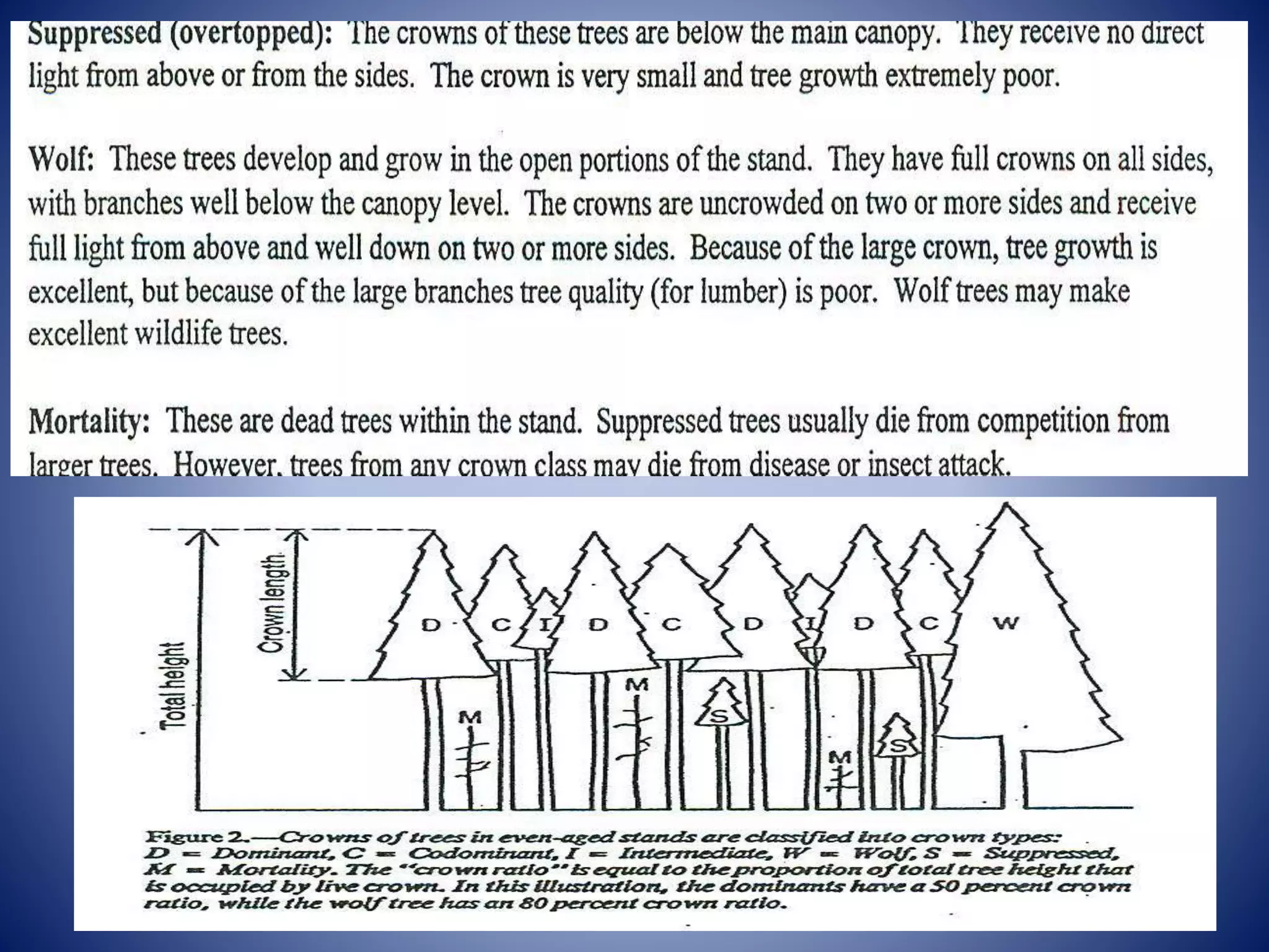 This document provides an introduction to forestry concepts including different tree crown classes such as dominant, co-dominant, intermediate, and suppressed trees. It also discusses the terms "wolf" and "mortality" as they relate to forestry. The document was written by Dr. Shailendra Bhalawe of the Department of Agro-forestry at Jawaharlal Nehru Agriculture University in Jabalpur, Madhya Pradesh, India.