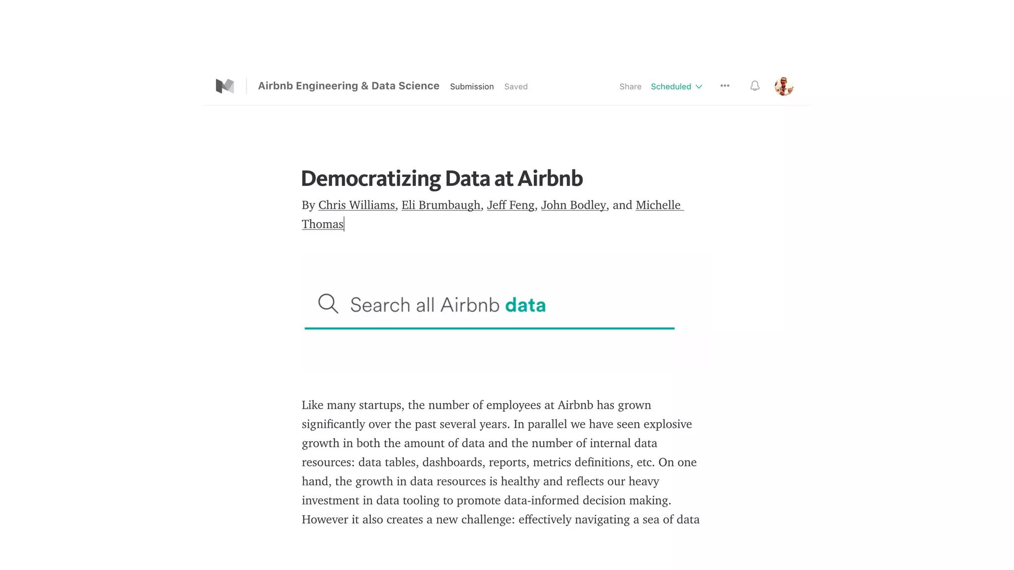 Airbnb aims to democratize data within the company by building a graph database of all internal data resources connected by relationships. This graph is queried through a search interface to help employees explore, discover, and build trust in company data. Challenges include modeling complex data dependencies and proxy nodes, merging graph updates from different sources, and designing a data-dense interface simply. Future goals are to gamify content production, deliver recommendations, certify trusted content, and analyze the information network.