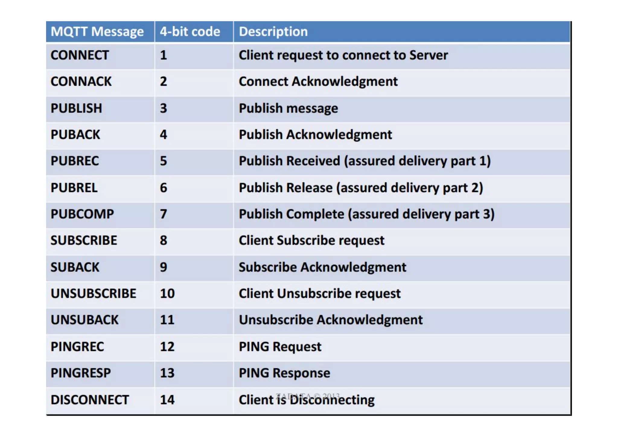 • Asof March 2013, MQTT is in the process of undergoing standardisation