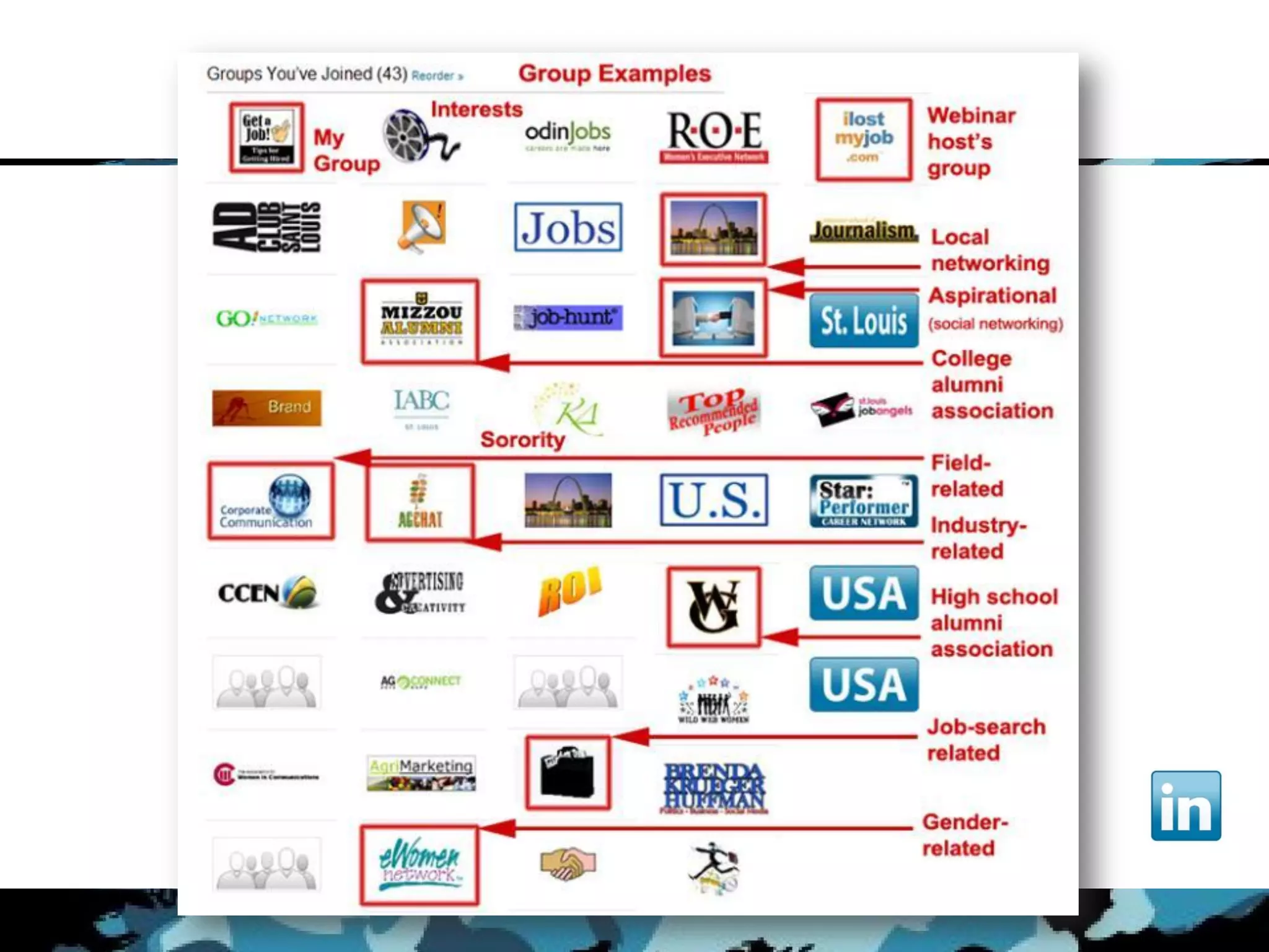The document discusses how to promote a blog on LinkedIn by networking, joining groups, and engaging with connections. It recommends completing your profile, connecting with others, inviting connections' connections, and participating in groups to grow your network exponentially. The document also suggests using LinkedIn messaging and applications to share content and establish a company page to promote blog posts and services to followers.