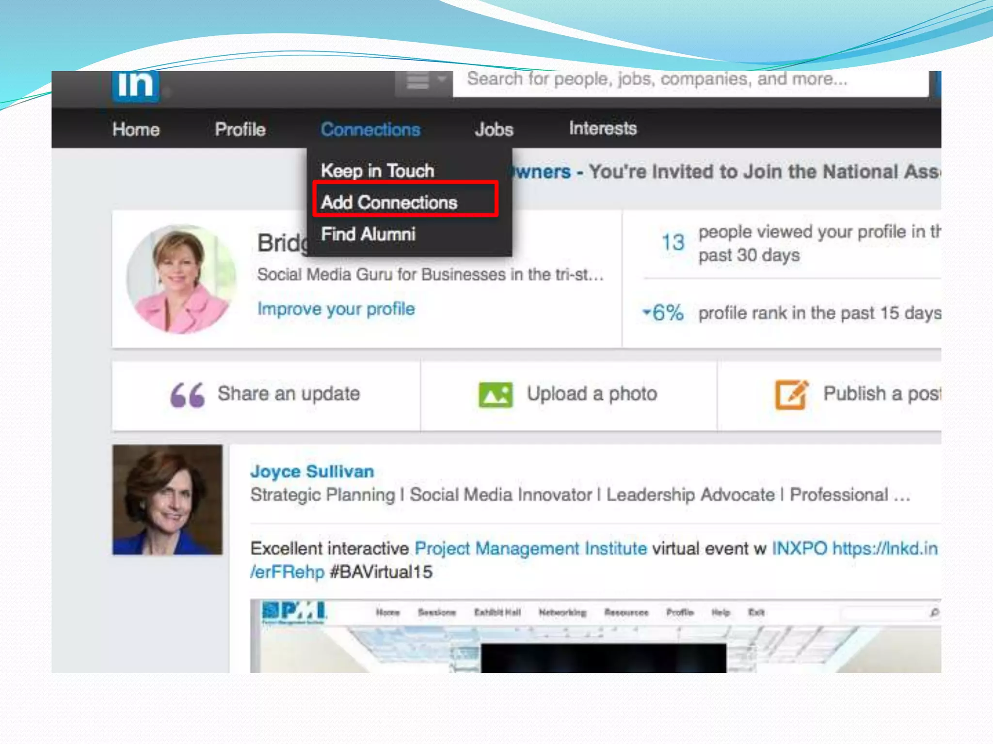 The document provides information on using LinkedIn to grow a professional network, build an optimized profile, interact with connections, find people and jobs, and more. It highlights key aspects of profiles like including an executive summary, skills, experience and recommendations to appear in more searches. It also outlines best practices for posting regular status updates, participating in groups, and using LinkedIn jobs and messaging functions to further business goals.