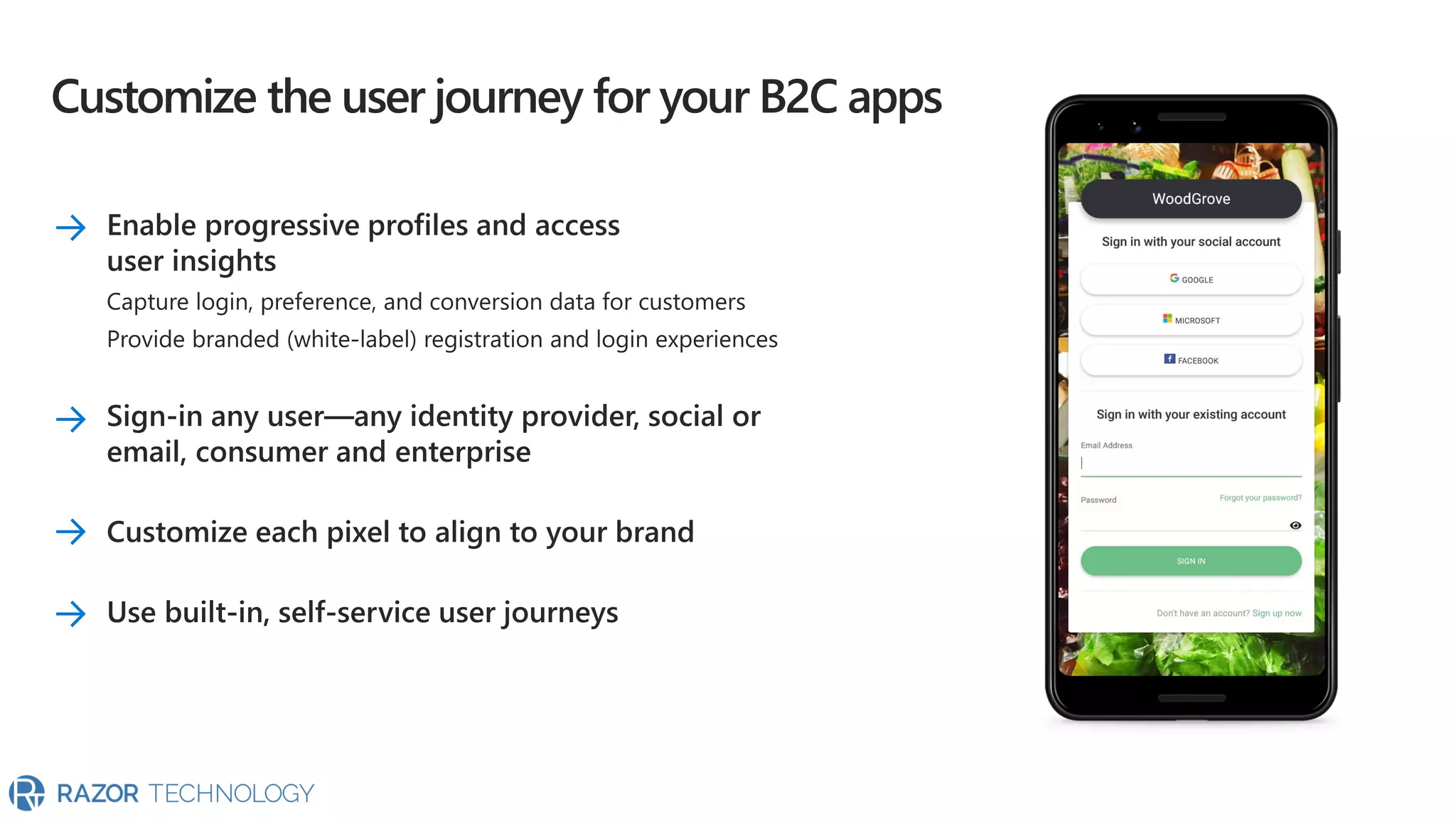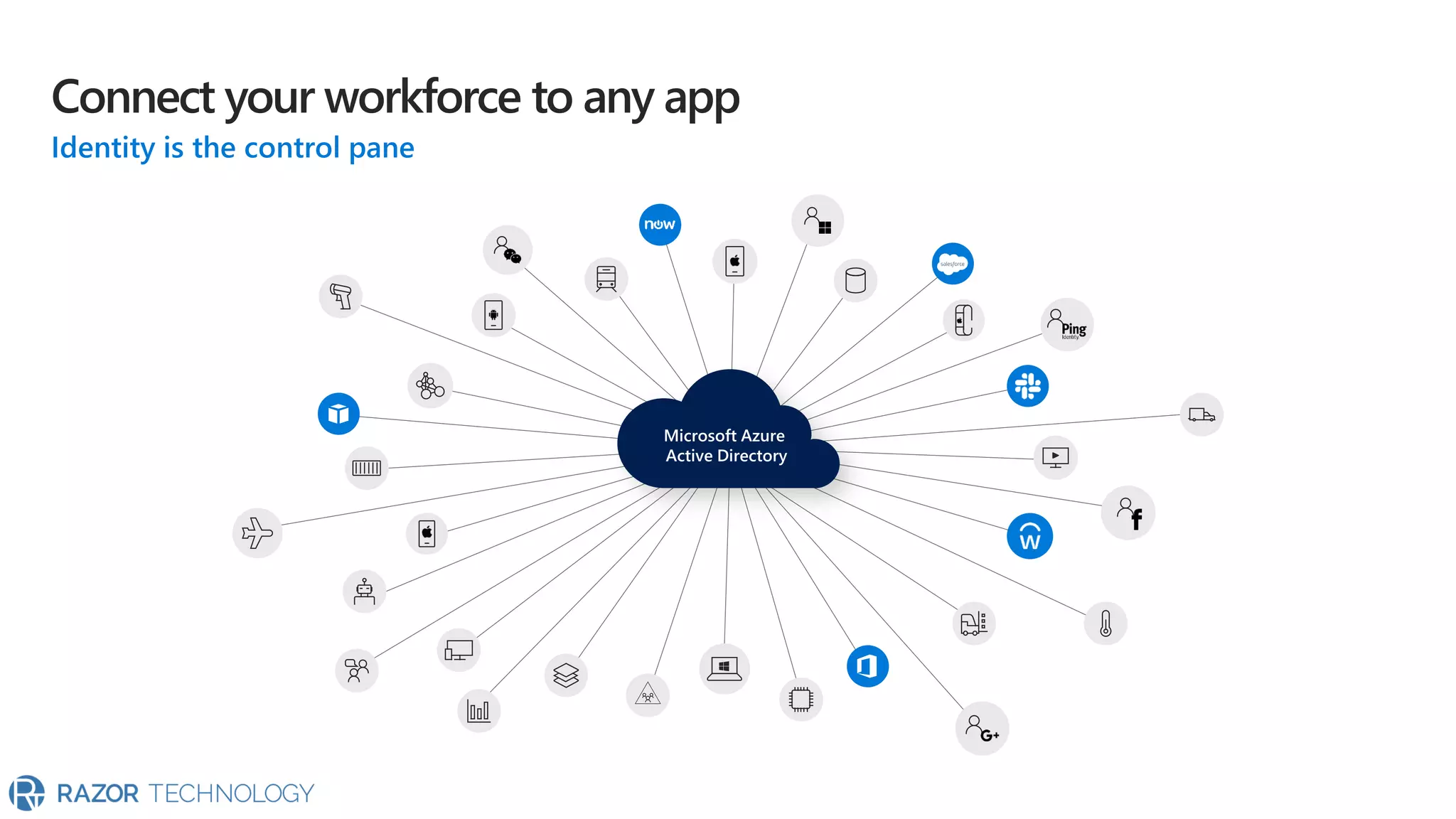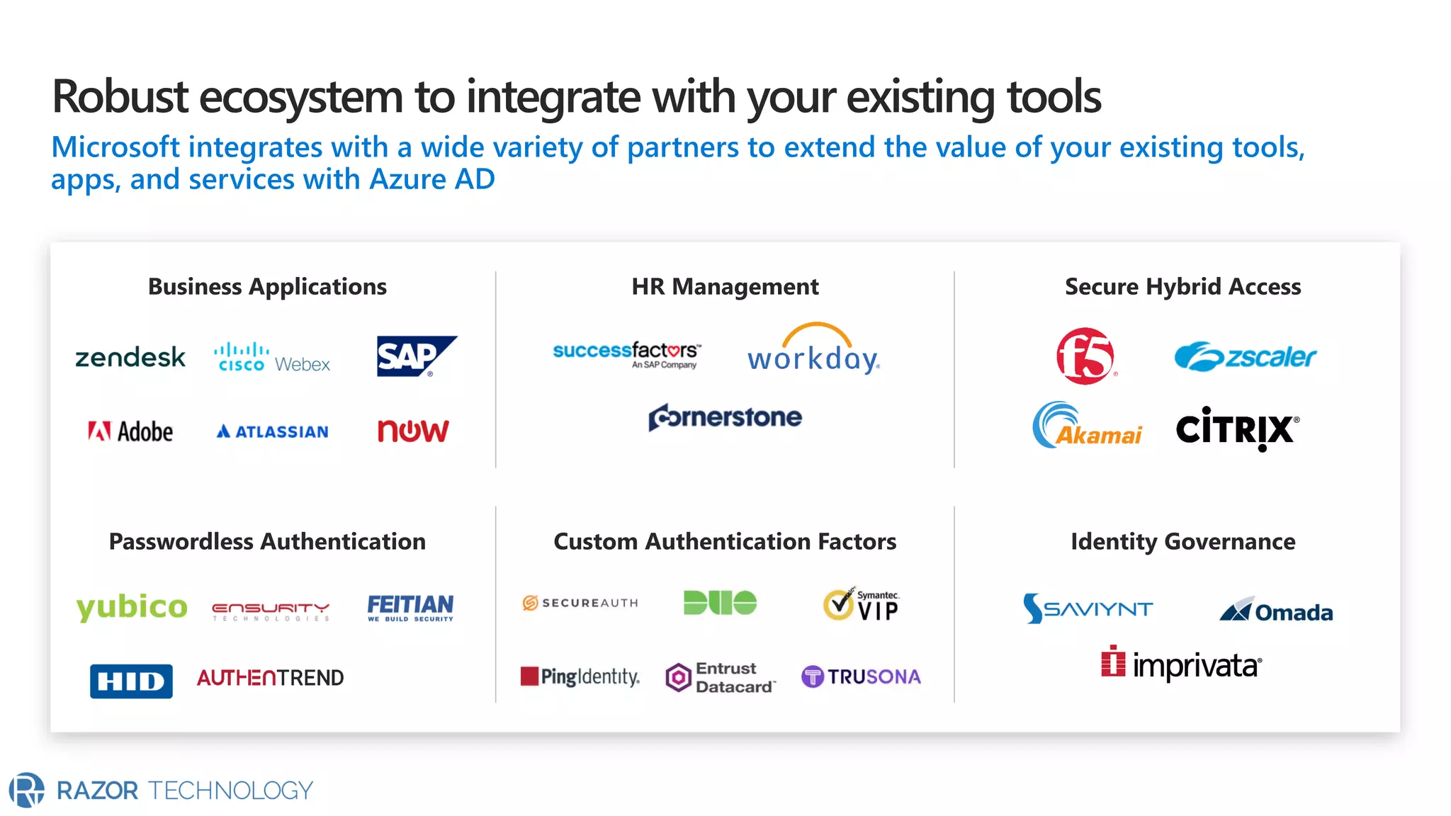 The document highlights the significant growth of active apps, exceeding 2 million with over 100% year-on-year growth as of October 2019. It mentions the use of cloud SaaS apps for securing and maintaining compliance for applications, customers, and brands. For more information, contact Razor Technology or visit their website.