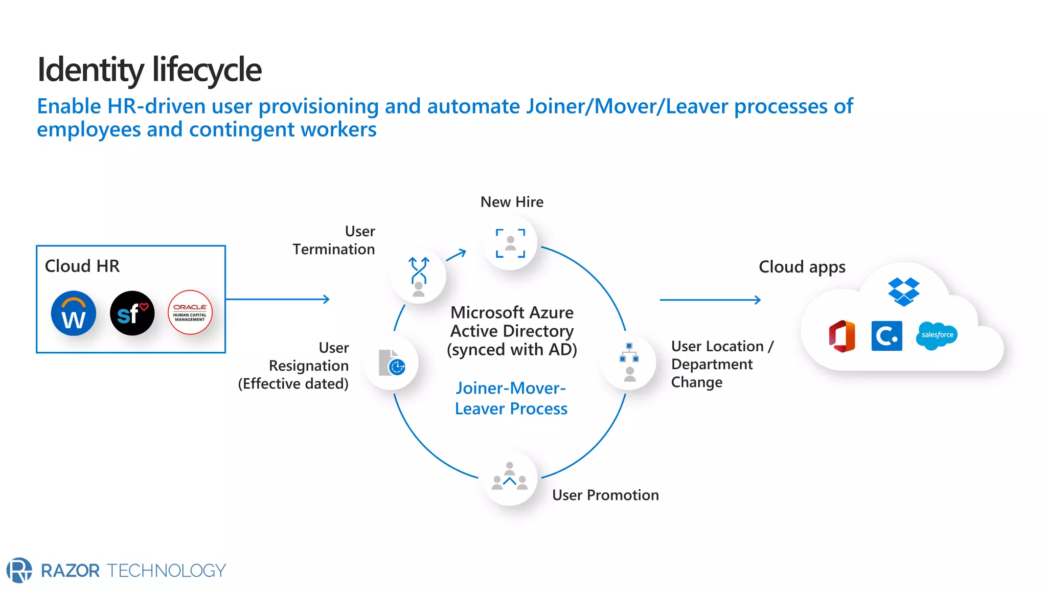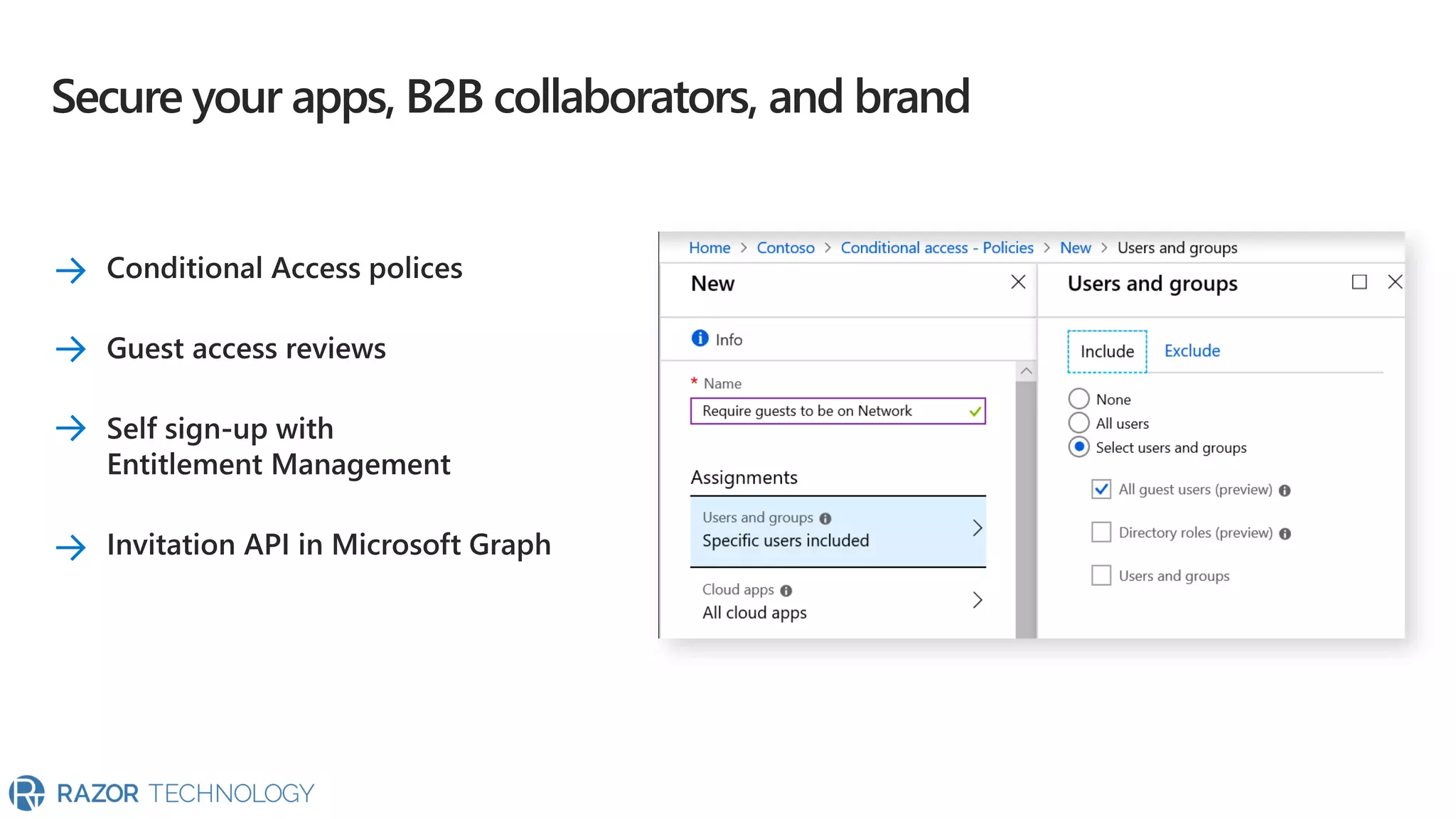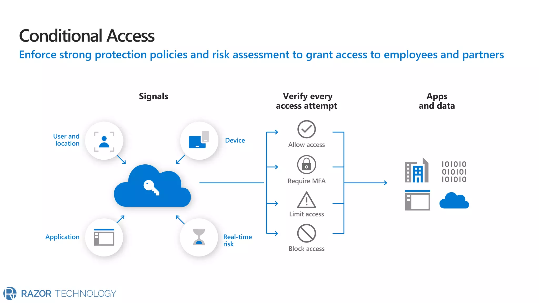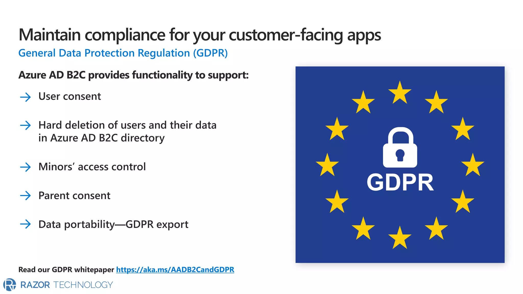 The document highlights the significant growth of active apps, exceeding 2 million with over 100% year-on-year growth as of October 2019. It mentions the use of cloud SaaS apps for securing and maintaining compliance for applications, customers, and brands. For more information, contact Razor Technology or visit their website.