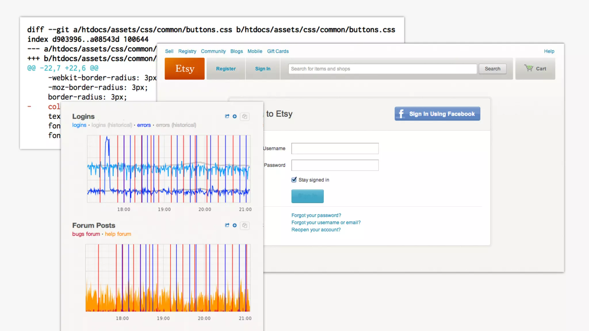 This document discusses principles and practices of continuous deployment at Etsy. It describes how Etsy moved from deploying code changes every 2-3 weeks with stressful release processes, to deploying over 30 times per day. The key principles that enabled this are innovating continuously, resolving scaling issues quickly, minimizing recovery time from failures, and prioritizing employee well-being over stressful releases. Automated testing, deployment to staging environments, dark launches, and extensive monitoring allow for frequent, low-risk deployments to production.