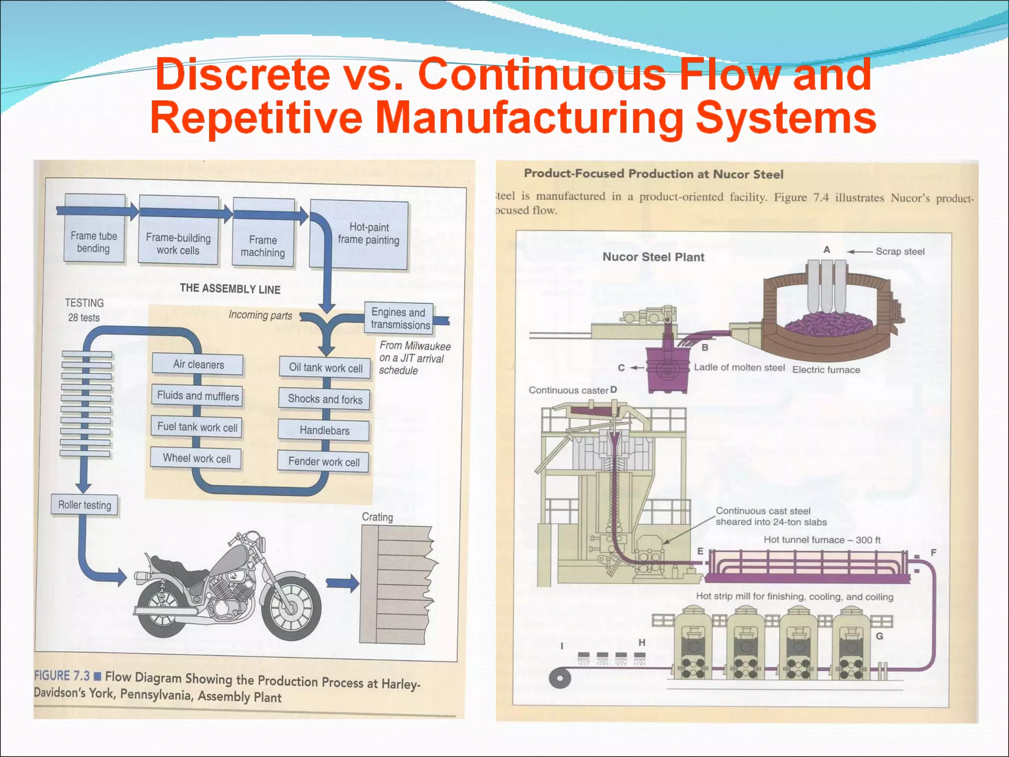 Process-focused Job Shops(Print shop, emergency room , machine shop, fine dining Repetitive (modular) focus Assembly line (Cars, appliances, TVs, fast-food restaurants) Product-focused Continuous (steel, beer, paper, bread) Mass Customization Customization at high Volume (Dell Computer ’ s PC) Low Moderate High Volume High Moderate Low Variety of Products