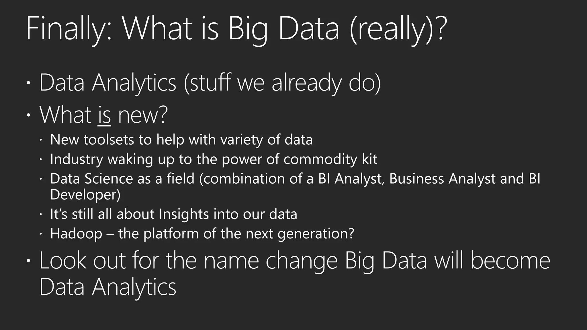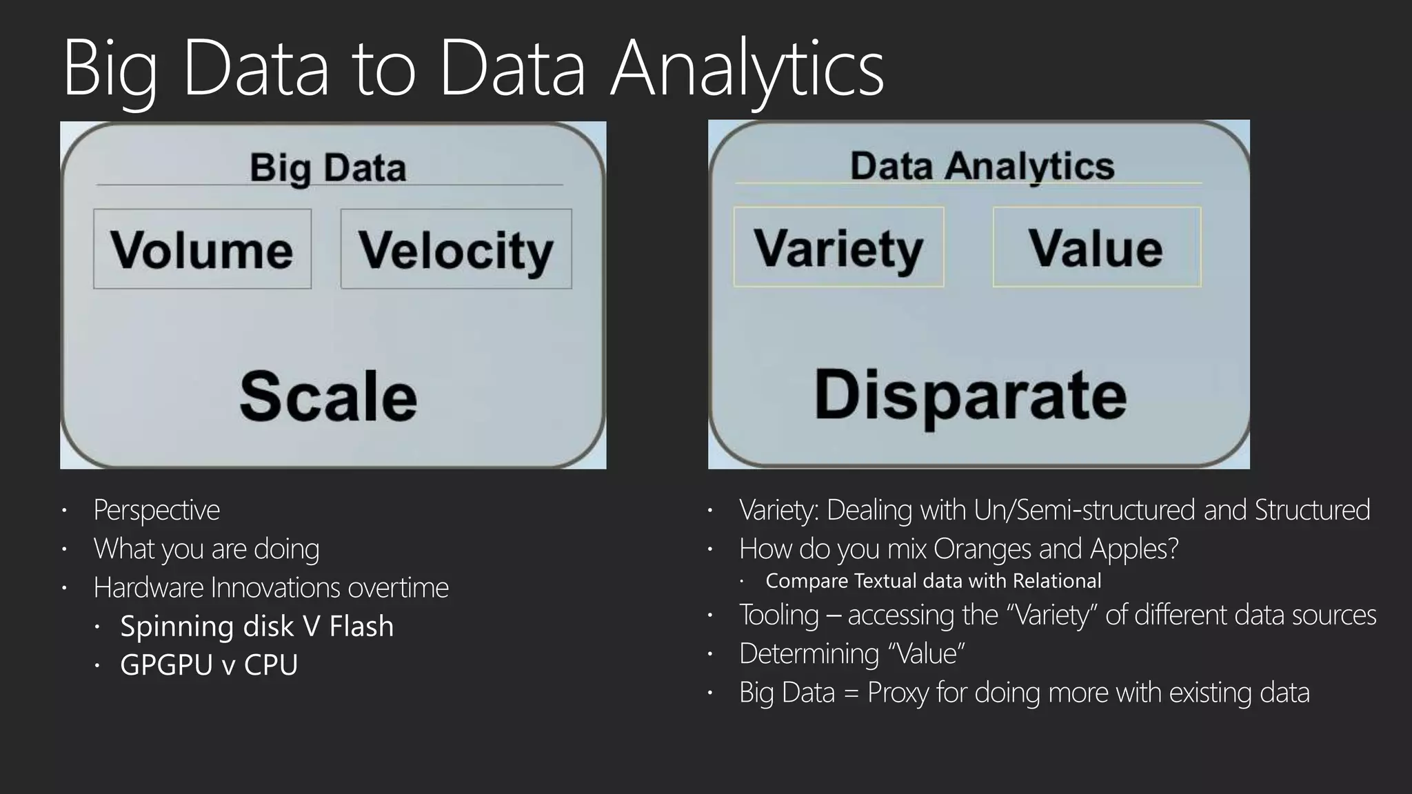 This document discusses different data processing models and their characteristics for structured and unstructured data at varying scales. It compares batch processing, interactive analysis, and stream processing in terms of query runtime, data volume handled, programming models, typical users, and examples of originating projects and open source implementations. It then provides examples of how organizations can gain competitive advantage by analyzing different types of data using these approaches.