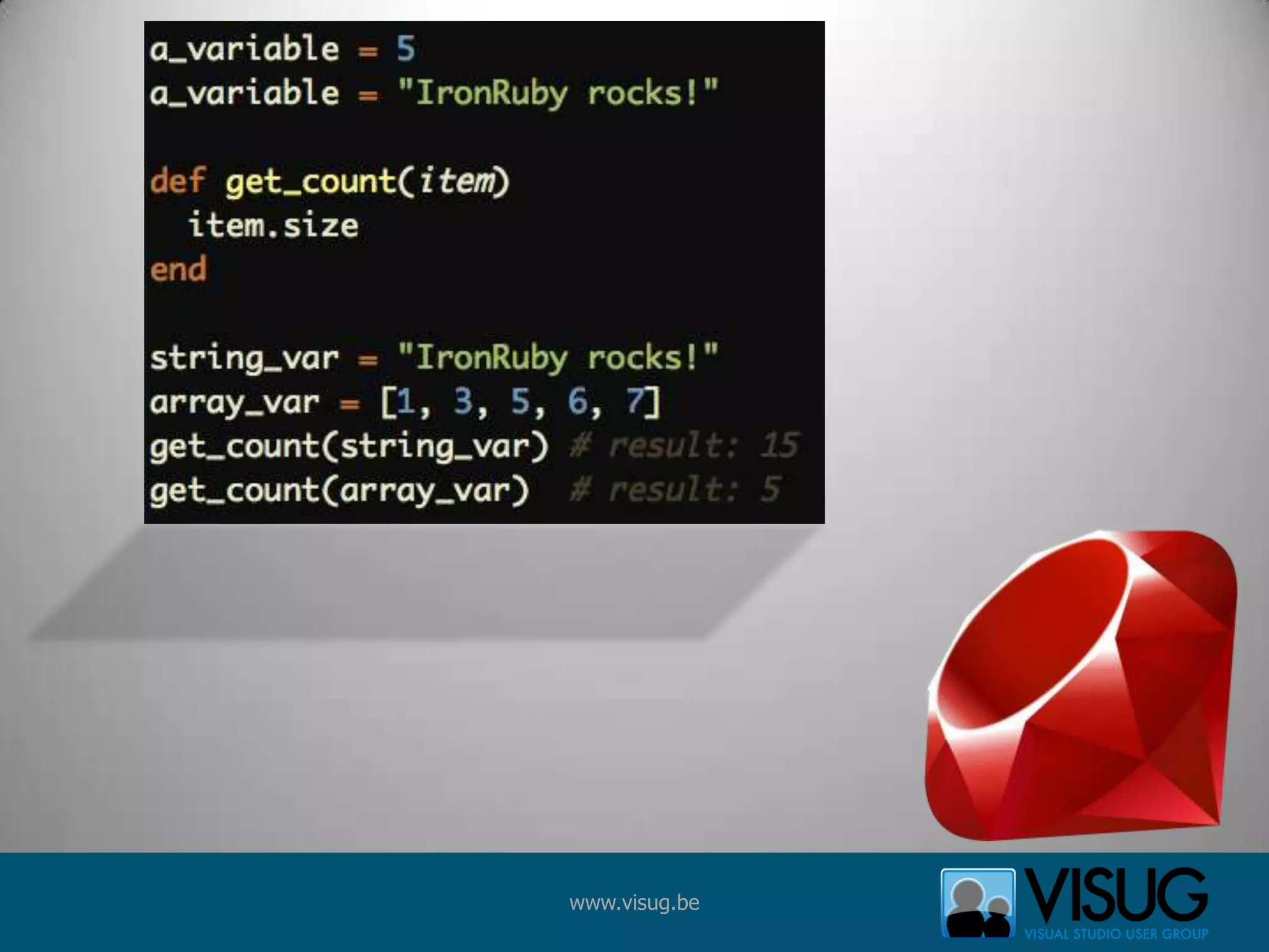 The document announces an upcoming session on June 30 about IronRuby given by Ivan Porto Carrero. It then provides an outline of the topics to be covered in the IronRuby session, including an introduction to CLR and DLR, an overview of different Ruby implementations like JRuby and IronRuby, reasons for using Ruby, Ruby concepts demonstrated through code, and how to integrate Ruby and .NET through IronRuby.