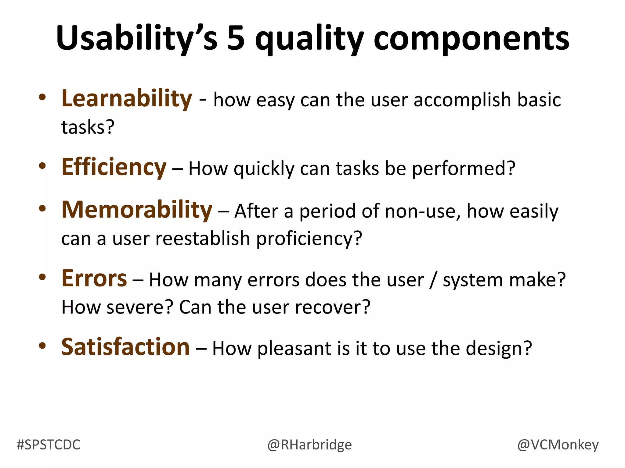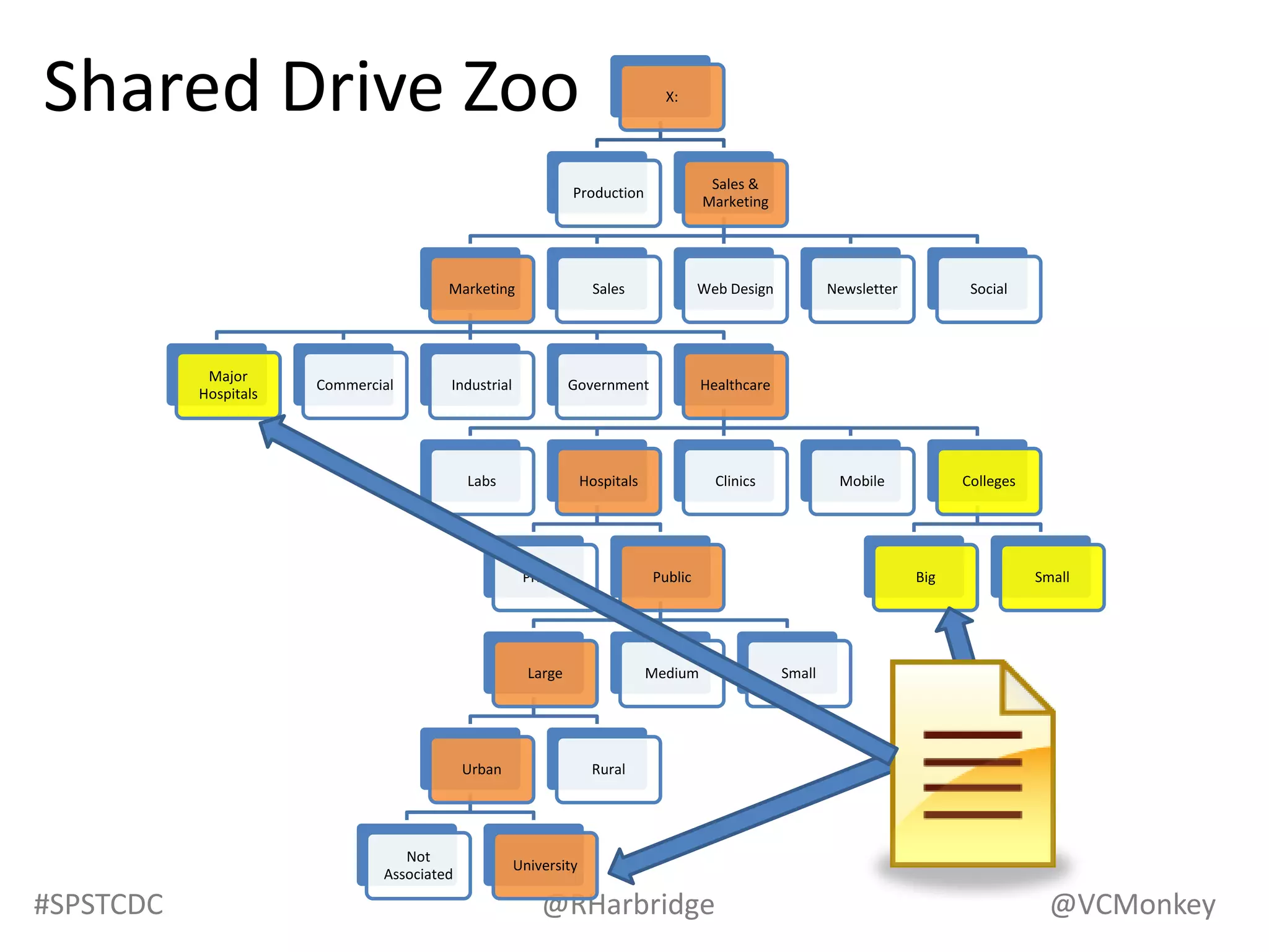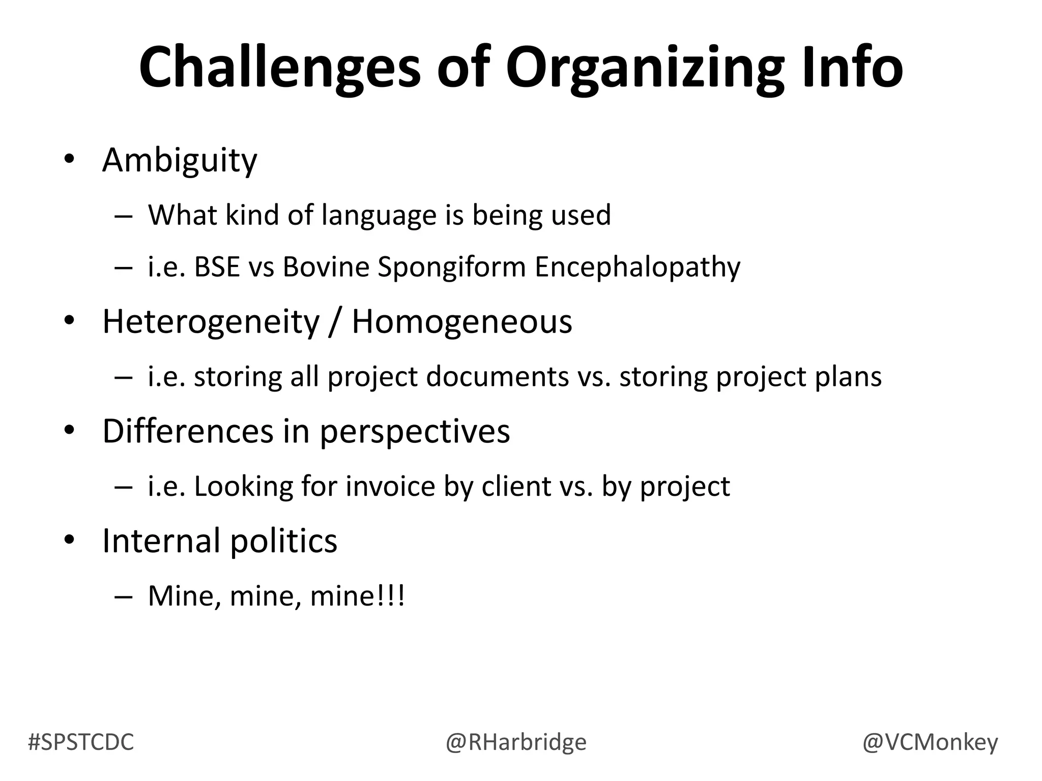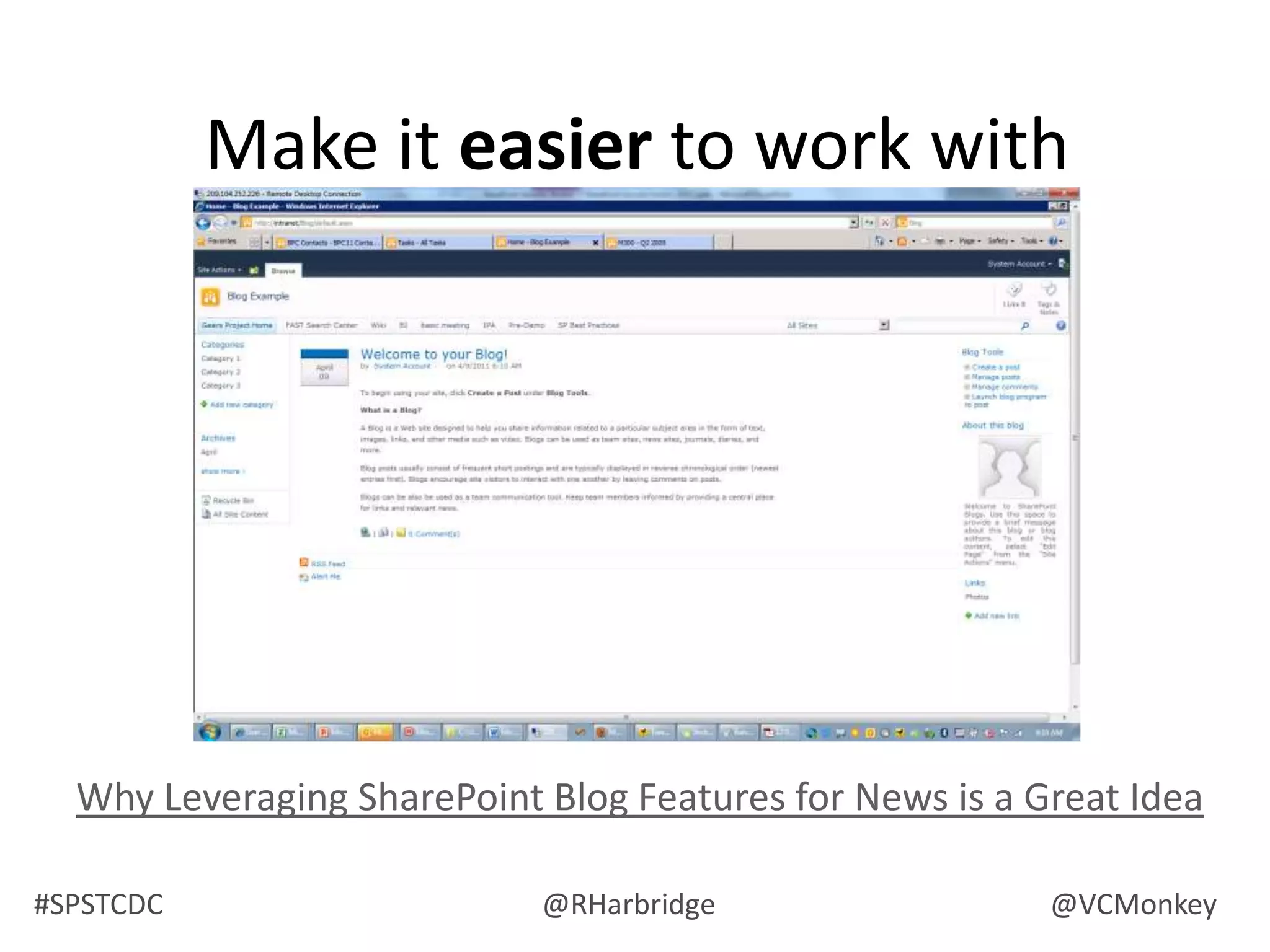 The document summarizes a presentation on information architecture for SharePoint systems. It discusses why SharePoint information systems often fail due to lack of planning, not understanding how business works, thinking the org chart is the site map, relying on Microsoft for design instead of users, and not reviewing usage. It then covers what makes an effective IA strategy, including understanding context, users, and content. It also discusses visualizing and communicating IA concepts through taxonomy, metadata, labeling, navigation systems, and card sorting techniques. The presentation aims to provide tips and strategies for developing an information architecture that works.
