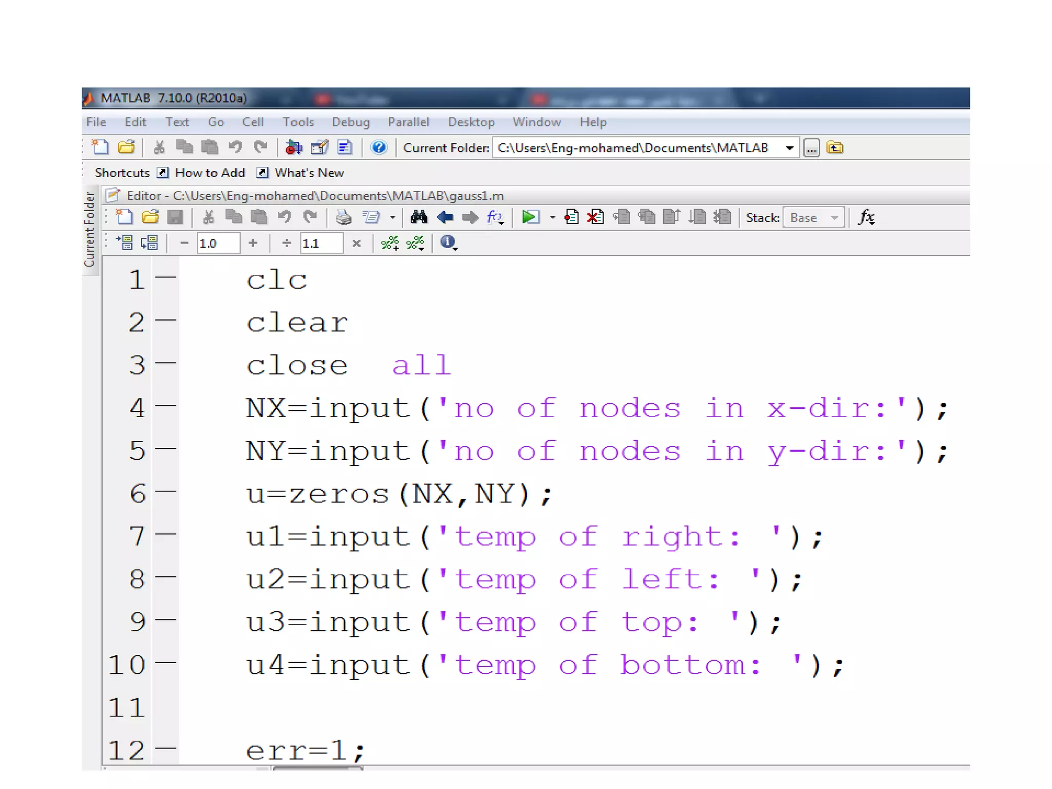 This document discusses solving the Laplace equation using the Gauss-Seidel method in MATLAB. It instructs the reader to run the program, input boundary conditions, and view the results of the temperature distribution in 2D and 3D formats. The author wishes the reader best wishes.
