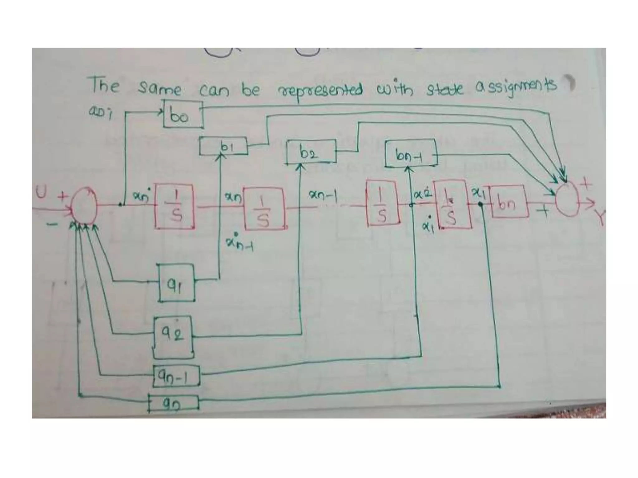Obtaining state models using canonical form I & II, incorporating equations in block diagram representation.