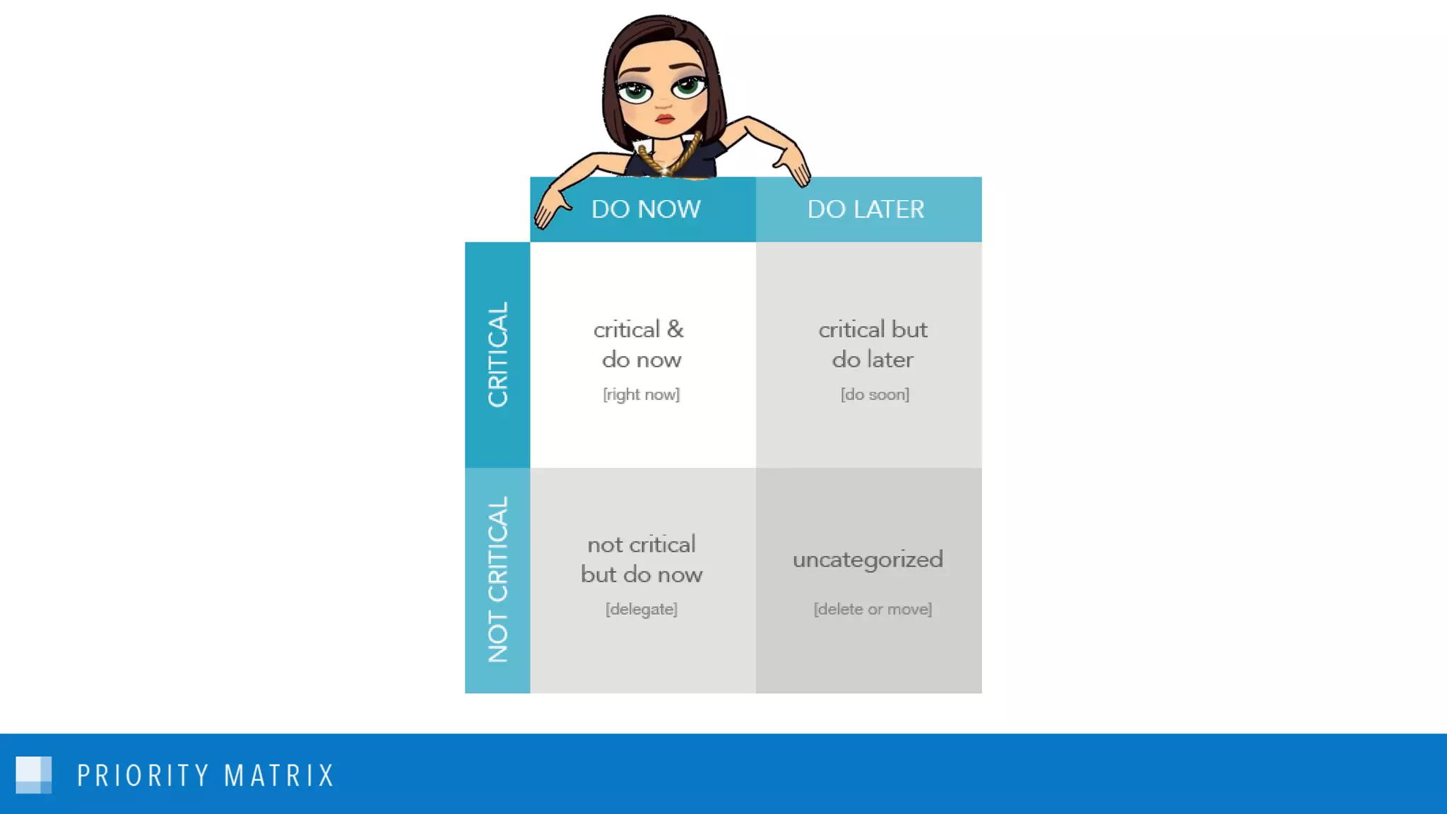 The document introduces the Eisenhower Matrix as a productivity tool that helps prioritize tasks into four categories: critical, do now; critical, but do later; not critical, but do now; and not critical, do later. It emphasizes the importance of categorizing tasks for better organization and focuses on creating action items for efficient project completion. Additionally, it promotes the Priority Matrix tool by Appfluence, which enables users to manage tasks and projects effectively, enhancing team collaboration and accountability.